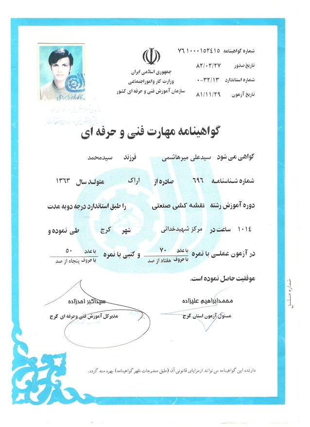 بعنوان سرپرست کارگاه در احداث مجتمع 8 واحدی تعاونی کارکنان شرکت واقع در شهرک مریم اندیشه بصورت تمام وقت مشغول بکار بودم